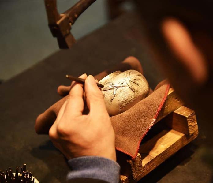 การแกะสลักลวดลายของทองคำโดยวิธีช่างแบบโบราณ