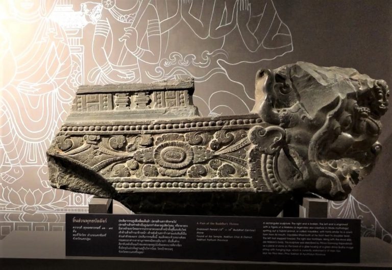 แท่นโพธิบัลลังก์ หรือ พุทธบัลลังก์ ปลายด้านขวาขาดหายไป