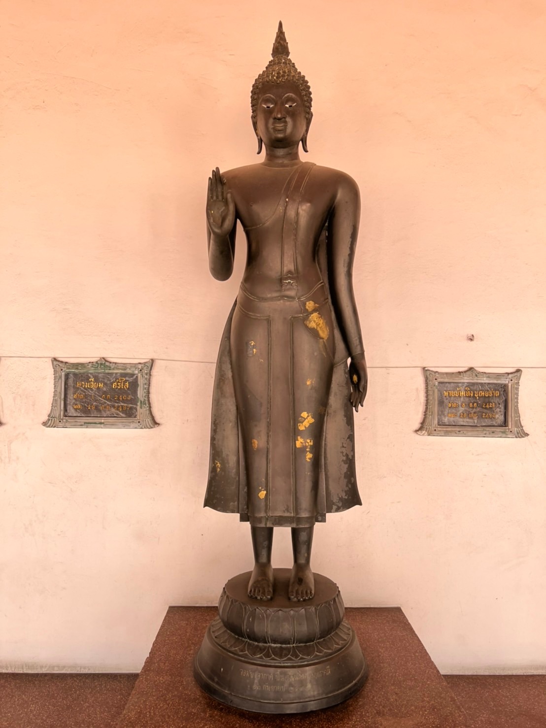 นอกจากพระพุทธรูปทั้ง 5 องค์ จะเป็นปางยืนเหมือนกันทั้งหมดแล้ว ที่ฐานขององค์พระที่มีจารึกระบุชื่อของผู้สร้างแล้ว ยังระบุวันที่ถวายเป็นวันที่ 13 กันยายน พ.ศ.2497 เหมือนกันทั้ง 5 องค์