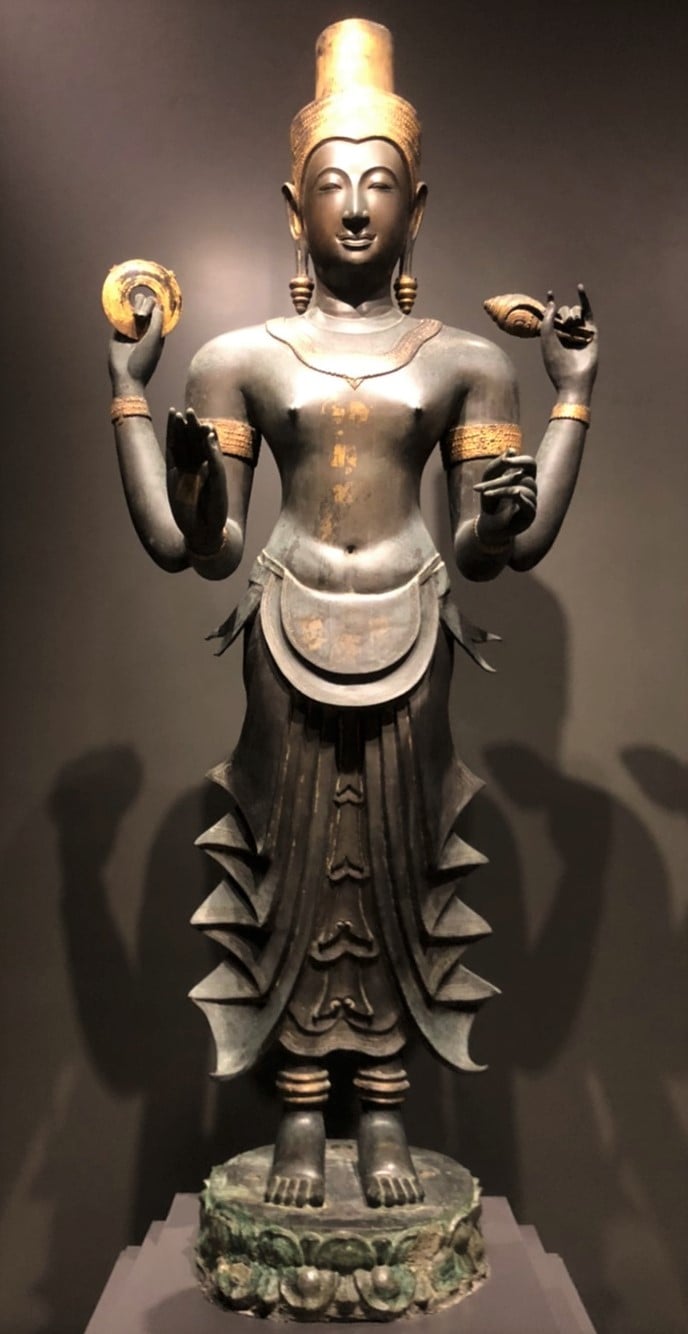 เทวรูปองค์นี้ทำจากสำริด มีความสูงรวมฐาน 268 เซนติเมตร ประทับยืนบนฐานบัวคว่ำบัวหงายทรงกลม มี 4 กร สองกรบนทรงจักรและสังข์ ทั้งยังทรงเครื่องประดับอย่างกษัตริย์ นุ่งภูษายาว ที่พระเศียรประดับศิราภรณ์คล้ายกับกีรีฏมงกุฎ หรือหมวกทรงกระบอก ซึ่งเป็นเครื่องแสดงฐานะของวรรณะกษัตริย์