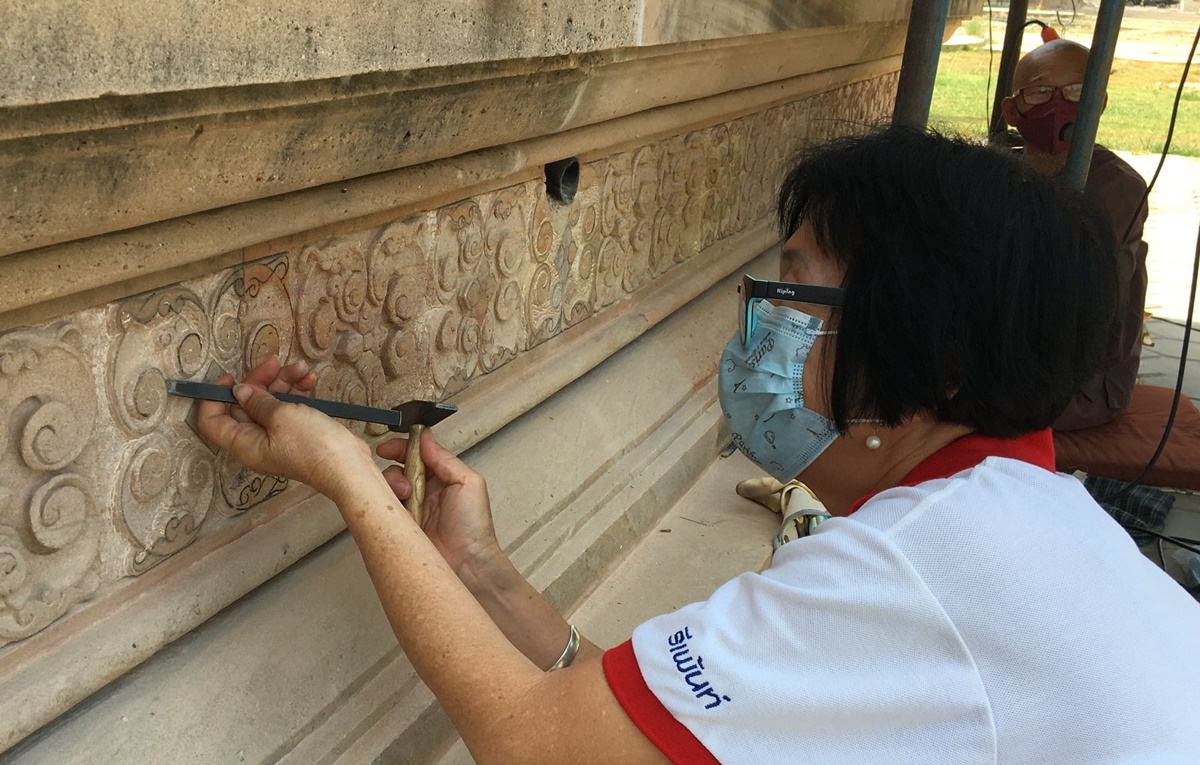 เคยสอบถามว่าทำไมสามารถแกะสลักออกมาได้ราวกับมืออาชีพ อาสาสมัครเหล่านั้นอธิบายว่าทางวัดจะมีแบบที่ร่างเอาไว้ให้ดู เพื่อให้แกะสลักตามนั้น ซึ่งก็ไม่ง่ายเลยสำหรับคนที่ไม่เคยทำงานเช่นนี้มาก่อน แต่ด้วยความเชื่อของคนที่มาทำต่างเชื่อว่าเป็นการทำเพื่อสะสมไว้ชาติหน้า และคนที่มาทำงานนี้ต้องมีบุญกุศลติดตัวมาแล้วเท่านั้น