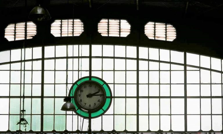 นาฬิกาเรือนใหญ่ที่มีทั้งด้านในและด้านนอกอาคารสถานี
