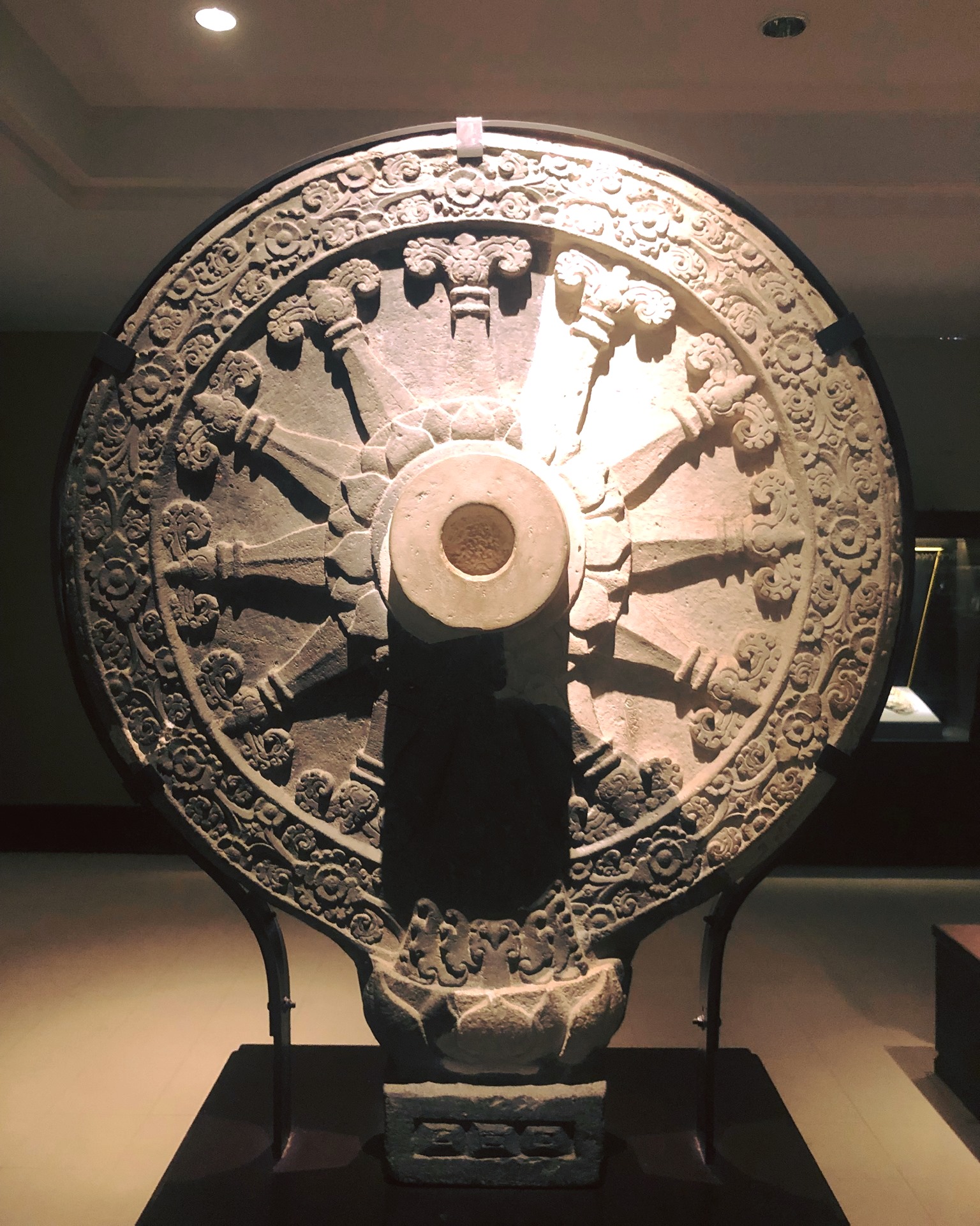 ส่วนต่างๆเหล่านี้มีลวดลายประดับตกแต่งงดงามเป็นอย่างยิ่ง เป็นต้นว่า ลายดอกไม้สลับกับสี่เหลี่ยมขนมเปียกปูน ลายก้านขด ลายคล้ายเปลวเพลิงซึ่งประดับอยู่ขอบนอกสุด รูปบุคคลที่เชื่อว่าเป็นพระอาทิตย์เทพซึ่งประดับอยู่เบื้องล่าง