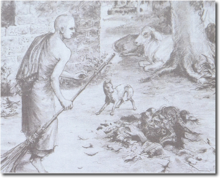 แต่นายร่วงได้ยินข่าวรู้ตัวก่อน จึงหนีออกจากเมืองละโว้ขึ้นไปยังเมืองเหนือ ไปบวชเป็นภิกษุอยู่ ณ วัดแห่งหนึ่งในเมืองสุโขทัย คนจึงเรียกกันว่า “พระร่วง” ต่อมาฝ่ายทหารขอมมาถึงเมืองละโว้ รู้ว่านายร่วงรู้ตัวและหนีขึ้นไปอยู่เมืองสุโขทัย มิรู้ว่าไปบวชเป็นพระ จึงให้พญาเดโชดำดินลอดปราการเข้าไปในเมือง เผอิญไปโผล่ขึ้นในลานวัดที่พระร่วงบวชอยู่ เวลานั้นพระร่วงกำลังลงกวาดลานวัด เห็นเข้าก็รู้ว่าขอม แต่ขอมไม่รู้จักพระร่วง จึงถามว่ารู้หรือไม่ว่า นายร่วงที่มาจากเมืองละโว้อยู่ที่ไหน พระร่วงก็ลั่นวาจาสิทธิ์ไปว่า “สู่อยู่ที่นั้นเถิด รูปจะไปบอกนายร่วง“ พอพูดจบ ขอมก็กลายเป็นหินติดคาแผ่นดินอยู่ตรงนั้น ชาวเมืองสุโขทัยรู้ว่าพระร่วงเป็นผู้มีบุญ เมื่อพระเจ้ากรุงสุโขทัยสิ้นพระชนม์ พวกเสนาอำมาตย์จึงพร้อมใจกันเชิญพระร่วงขึ้นเป็นพระเจ้าแผ่นดิน ทรงพระนามว่า “พระเจ้าศรีจันทราธิบดี”