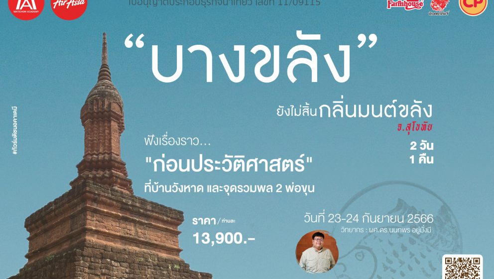 16.55 น. | ถึง วัดโบสถ์ อยู่นอกเมืองบางขลังทางทิศตะวันตกเฉียงใต้ ชมมณฑปก่อด้วยศิลาแลงและได้รับการก่ออิฐเสริมในระยะต่อมา โดยมีลักษณะคล้ายมณฑปที่วัดตึก นอกเมืองสุโขทัยทางทิศตะวันตก และวัดหนองพิกุลในเขตอรัญญิกของเมืองนครชุม จ.กำแพงเพชร นอกจากนี้ยังขุดพบพระพุทธรูปปูนปั้นปางมารวิชัย ซึ่งชาวบ้านเรียกว่า “หลวงพ่อขาว” ปัจจุบันประดิษฐานในพระอุโบสถหลังใหม่ |