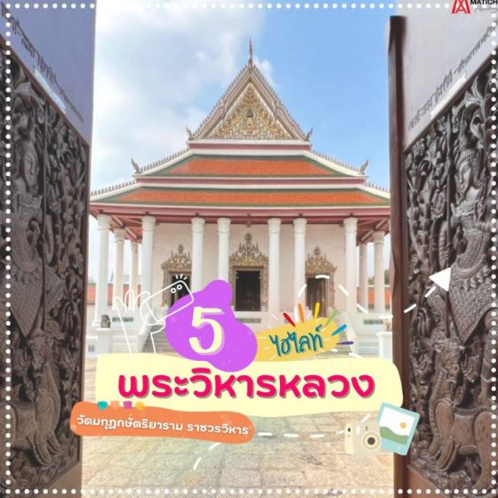 - พระวิหารหลวง บริเวณหน้าบันและด้านบนของซุ้มประตูหน้าต่างมีลาย “พระมหามงกุฏ” อันเป็นตราประจำรัชกาลที่ 4 สักการะ “พระพุทธวชิรมงกุฏ” พระประธานปางสมาธิ ศิลปะรัตนโกสินทร์ ประดิษฐานอยู่บนบุษบกฐานหินอ่อน 2 ชั้น พร้อมชมจิตรกรรมฝาผนังที่มีอิทธิพลศิลปะตะวันตก โดยใช้การเขียนภาพแบบมีมิติทัศน์และแทรกวิถีชีวิตลงไปด้วย รวมถึงบานหน้าต่างและบานประตูด้านในที่เขียนพระสูตรด้วยพระคาถาต่างๆ