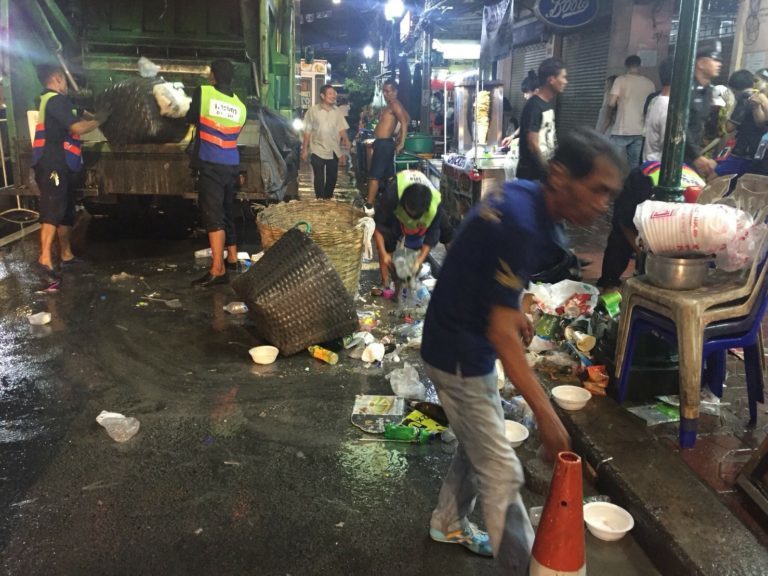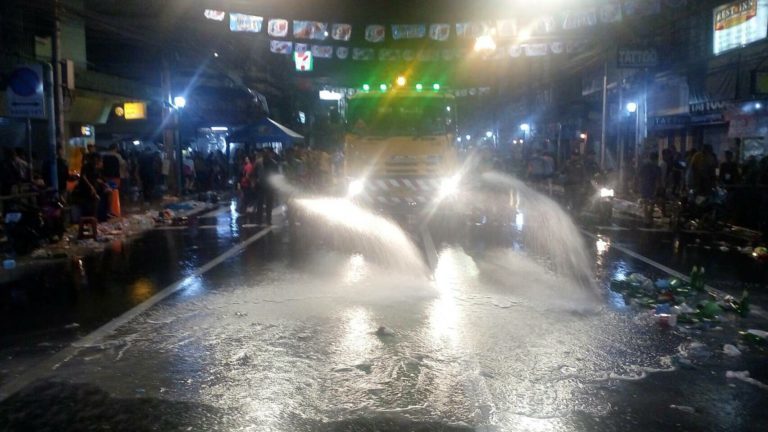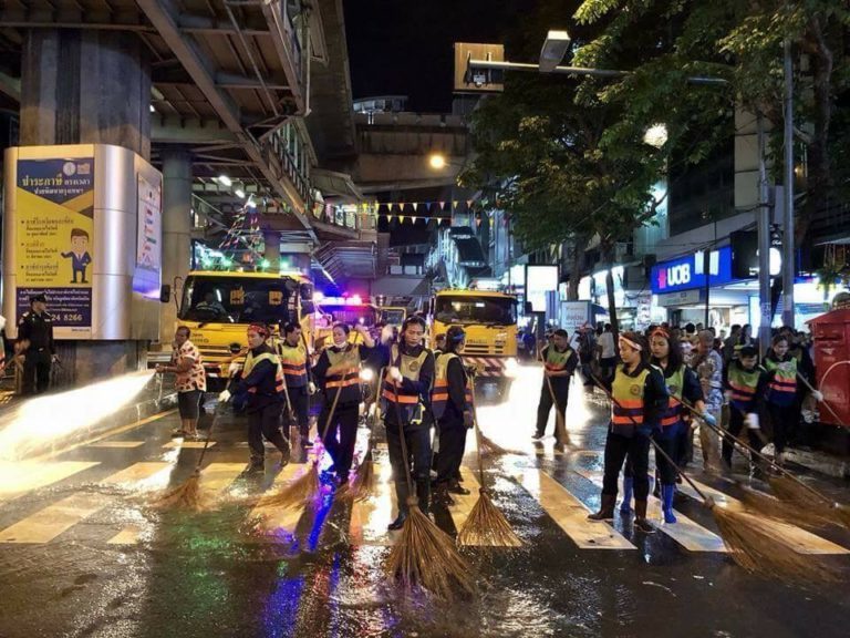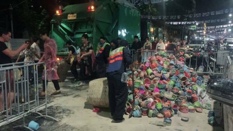 เมื่อวันที่ 16 เมษายน นายพงศธร ศิริธรรม ผู้อำนวยการเขตพระนคร พร้อมด้วยนางสาวรุจิรา อารินทร์ ผู้ช่วยผู้อำนวยการเขตพระนคร นายอภิชาต แสนมาโนช หัวหน้าฝ่ายเทศกิจ ว่าที่ร้อยตรีฤทธิพันธ์ นันทศุภกร หัวหน้าฝ่ายรักษาความสะอาดฯ ประชุมแถวมอบหมายภารกิจ ก่อนร่วมกับทหาร ตำรวจ นำกำลังเจ้าหน้าที่เดินเท้าประชาสัมพันธ์ให้ผู้ค้าจัดเก็บอุปกรณ์การค้า และให้ประชาชนเลิกเล่นสาดน้ำตามกำหนดเวลา เมื่อเวลา 22.00 น.วันที่ 15 เมษายนที่ผ่านมา จากนั้นเจ้าหน้าที่รักษาความสะอาดได้ดำเนินการเก็บกวาดขยะ ฉีดล้างทำความสะอาดคราบแป้ง บริเวณถนนจักรพงษ์ ถนนข้าวสาร ถนนตานี และถนนสิบสามห้าง เพื่อความเป็นระเบียบเรียบร้อย คืนความสะอาดให้พื้นที่พร้อมสำหรับวันทำงาน