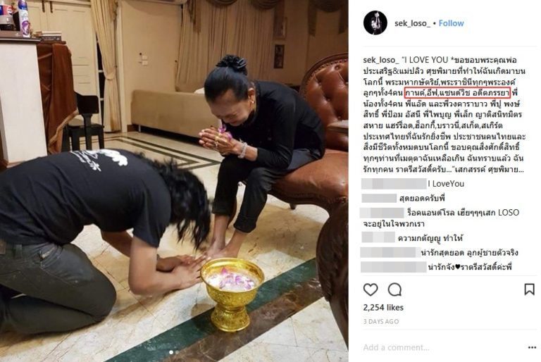 ทั้งนี้ในอินสตาแกรมส่วนตัวของเสก ก็ได้โพสต์ภาพขณะกราบเท้าแม่ ก่อนจะพูดถึงบุคคลต่างๆ รวมถึง อดีตภรรยา อย่าง กานต์-วิภากร และ แซนวิช-ปภาดา โชติกวณิชย์ ที่งานนี้เสกรวม อีฟ ไว้ในกลุ่มนี้ด้วย
