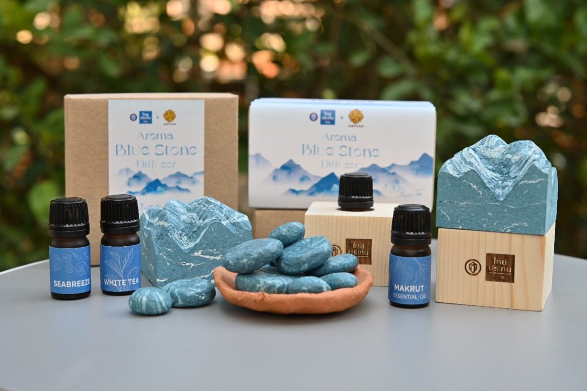 ในปีที่ผ่านมา ‘กลุ่มธูปหอมอัมพัน’ ประสบความสำเร็จในการขยายอาชีพ และสามารถสร้างงาน สร้างรายได้ให้แก่คนในชุมชน ยิ่งทำให้ไทยประกันชีวิตมั่นใจในความแข็งแกร่งของแบรนด์พื้นบ้านที่มี ‘อัตลักษณ์’ เป็นจุดขาย โดยความร่วมมือระหว่างไทยประกันชีวิตและอัมพัน เริ่มต้นขึ้นจากก้าวแรกในการช่วย ‘พัฒนาสินค้า’ ต่อยอดด้วยการติดอาวุธ ‘เสริมทักษะบริหารจัดการ’ ให้กับเครือข่ายชาวบ้านกลุ่มอัมพัน ที่มีความมุ่งมั่นเป็นทุนเดิม ให้พิชิตปลายทางสู่ความสำเร็จ คือการเห็นคนในท้องถิ่นมี ‘คุณภาพชีวิตที่ดี’ และ ‘เติบโตไปด้วยกัน’ โดยผลิตภัณฑ์ Aroma Blue Stone Diffuser ‘ไทยประกันชีวิต’ ได้ร่วมพัฒนาแนวคิดผลิตภัณฑ์และบรรจุภัณฑ์ (Packaging) พิเศษ ที่แสดงถึงอัตลักษณ์ท้องถิ่น และสร้างรายได้ให้แก่ชุมชน