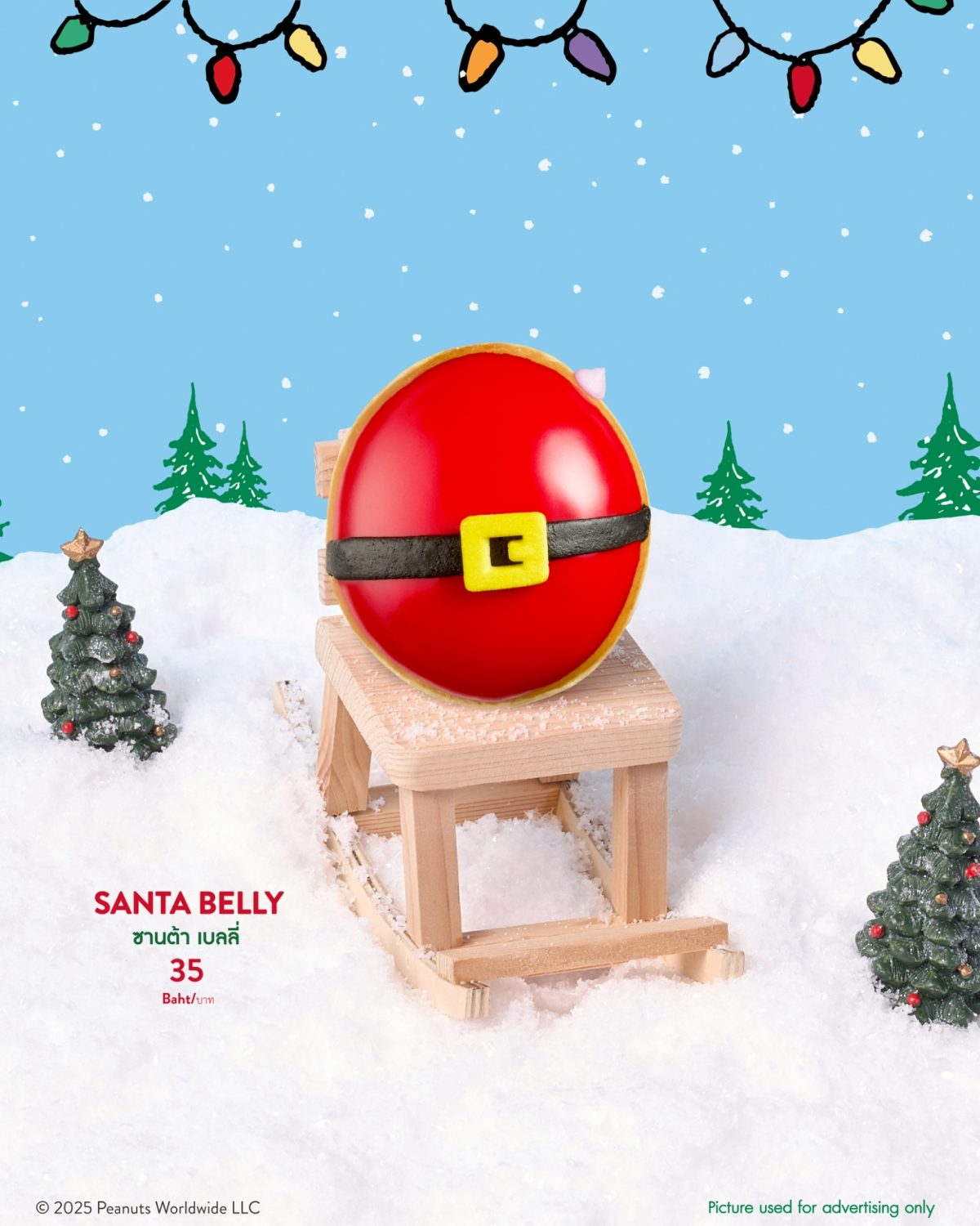ริสปี้ ครีม (Krispy Kreme) โดนัทสูตรลิขสิทธิ์อันดับ 1 ที่ครองใจคนทั่วโลก ส่งความสุขรับคริสต์มาสและปีใหม่แบบ เอ็กคลูซีฟด้วย “Krispy Kreme x Peanuts™ Christmas Doughnuts” ให้คุณได้ร่วมฉลองไปกับสนูปปี้, ผองเพื่อน และสัญลักษณ์ประจำเทศกาลคริสมาสต์ ด้วยโดนัท 4 แบบ 4 สไตล์ เริ่มที่สนูปปี้ คุกกี้แอนด์ ครีม (Snoopy Cookies & Kreme™) โดนัทรูปทรงหัวใจ เคลือบไวท์ช็อกโกแลต ตกแต่งเป็นหน้าตาของสนูปปี้ ขวัญใจของคนทุกวัย พร้อมสอดไส้คุ้กกี้แอนด์ครีมเข้มข้น ตามมาด้วยคู่ซี้ ชาร์ลี บราวน์ ออนาเม้นท์ (Charlie Brown Ornament) โดนัทสอดไส้บราวน์บัตเตอร์ท็อฟฟี่คัสตาร์ด เคลือบช็อกโกแลตสีเหลือง โดดเด่นด้วยลวดลายหยักของเสื้อตัวเก่งจากดาร์กช็อกโกแลต, คริสต์มาส โดนัท (Christmas Wreath) โดนัทออริจินอล เกลซ ประดับด้วย Wreath จากวิปปิ้งครีมสีเขียวเนียนนุ่ม เพิ่มกิมมิคด้วยสนูปปี้กับเพื่อนที่ดีทีสุด เจ้านกสีเหลืองวูดสต็อกบนโบว์สีแดงสดใส ปิดท้ายด้วย ซานต้า เบลลี่ (Santa Belly) โดนัทเนื้อนุ่มสอดไส้สตรอว์เบอร์รีครีมรสละมุน เคลือบด้วยช็อกโกแลตสีแดงสด ตกแต่งด้วยซานต้าเบลต์ชูการ์แคนดี้ เพิ่มความน่ารักให้เข้ากับเทศกาล